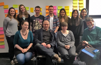Students from UEA's MSc Marketing and Management Course created a marketing brief for the Footprints project. This photograph features the students who interviewed key project stakeholders, in the front row from left to right are: Sophie Cabot (Norfolk County Trails), Rik Martin (Community Action Norfolk), Karen Smyth (UEA), and Rob Knee (Paston Heritage Society).This project forms a central contribution to UEA's interests in Medical Humanities. What underpins the range of Footprints' activities is the empowering of people to foster links and belonging to their local, globally important, heritage through creative and analytical skills training and making the heritage accessible to non-traditional audiences. As such, the lead PI, Dr Karen Smyth, Associate Professor in Literature at UEA, is dedicated to fostering creative and wellbeing impact.