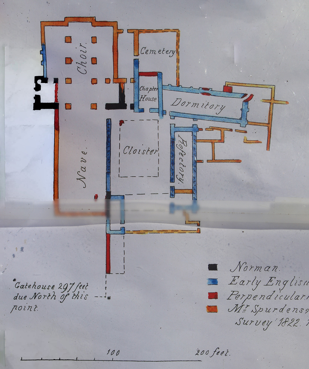 A plan of the Bromholm ruins was published by Henry Harrod FSA in 1857 (Gleanings Among the Castles and Convents of Norfolk, p. 220) and was a combination of his own survey made in 1854 and a plan made by Mr Spurdens in 1822, when the remains were more extensive.