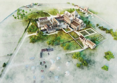A depiction from the Footprints 3D model of an evening mist over Bronholm.The foundation might have remained a provincial monastery but it became a national pilgrimage site on acquisition of what was said to be a piece of the 'true cross'. It seems that this ancient wood was fashioned into the shape of a cross and became a subject of considerable veneration at the priory. Such an object or 'relic' - and there continue to be such relics held by many churches today - would draw people to Bromholm.