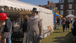 Sea captain Clement Paston at Cromer Crab & Lobster festivalAt the outset of the Paston Footprints project it was not envisaged that Cromer – or Shipden, to use its alternative medieval name – would be a place of particular interest. But with the emergence of the knowledge that the town – or at least two of its manors – included early purchases of Judge William Paston, there were opportunities to develop links. Little is known of the funding and building of the large parish church at Cromer in the late 14th century, and much of the medieval detail of the building has been lost over the centuries and replaced by restoration. However, the vicar at Cromer plays his part in the Paston Letters, as it is he who is recorded as being the witness for the machinations that followed the Paston acquisition of the manor of East Beckham.