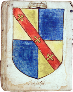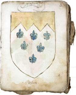 The Paston arms, from the Paston Book of Arms, formerly known as Friar Brackley's Book of Arms, c. 1450 Norfolk Record Office, RYE 38, p. 73However, in April 1465, John de la Pole, Duke of Suffolk began to assert his claims to the Paston manors of Hellesdon and Drayton, using, first, legal means and then the threat of armed force. In May, with an attack seemingly imminent, the Pastons garrisoned Drayton Lodge, although nothing occurred until October of that year, when a large force of the Duke's armed retainers entered Hellesdon and Drayton and 'beat down' the Paston properties there. Drayton Lodge was left as a ruin, which the Pastons chose not to repair. Four years later, in June 1469, when Edward IV passed along the main road (now the A1067) from Norwich to Walsingham, he was shown the nearby lodge which had been damaged, but refused to offer any remedy.