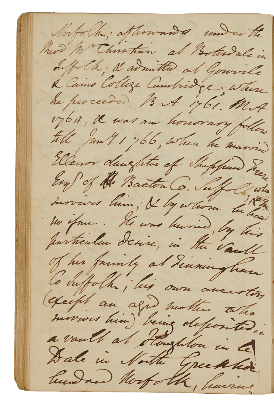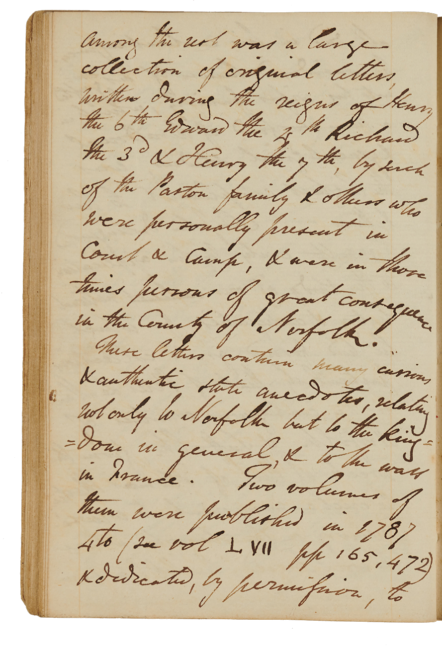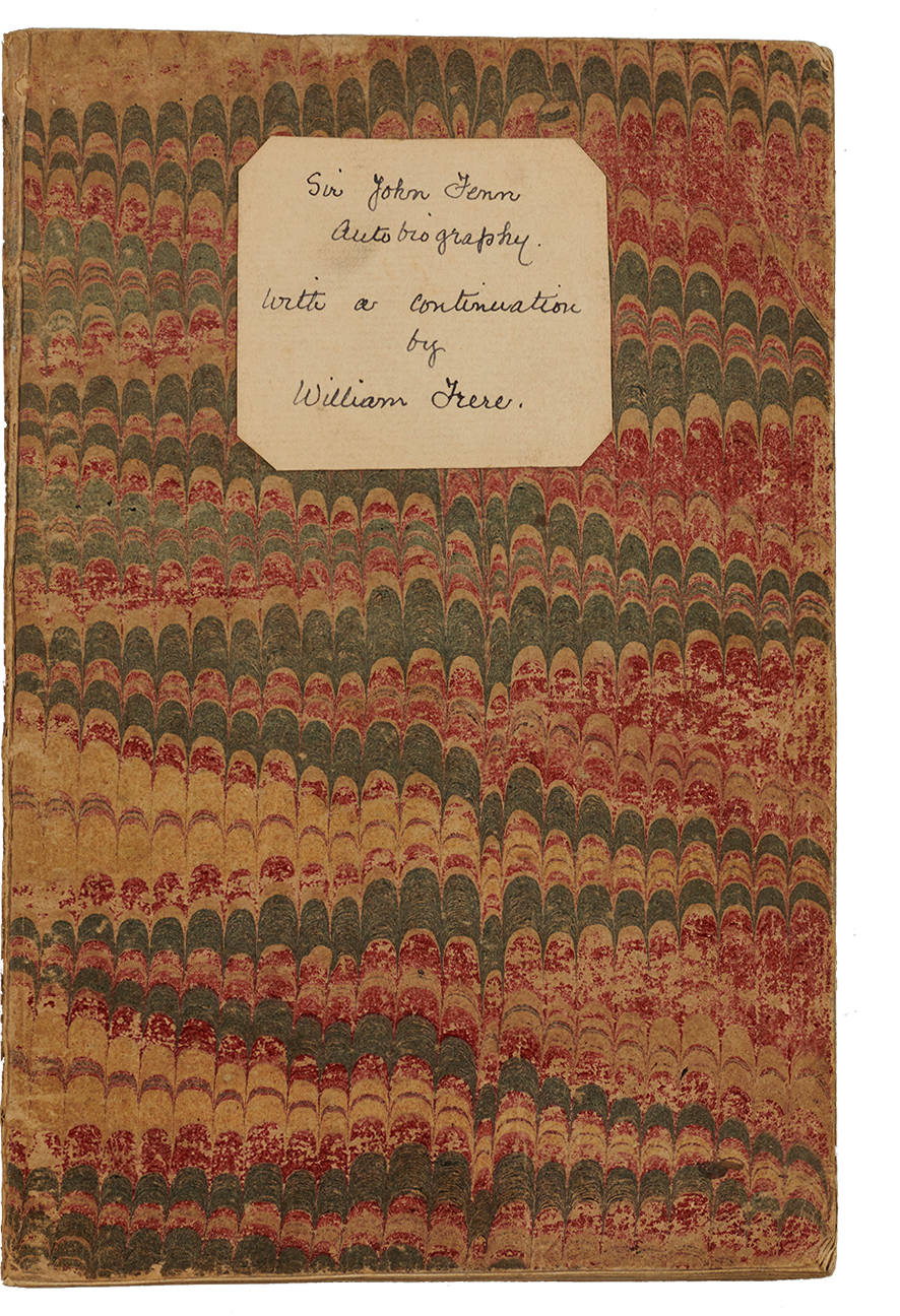 The autobiography of Sir John Fenn, the first editor in print of the Paston Letters. This book is now looked after at the Norfolk Record Office. His diaries for several years are also at the Norfolk Record Office..