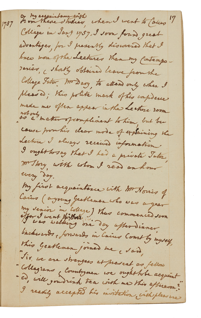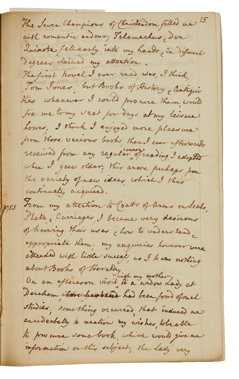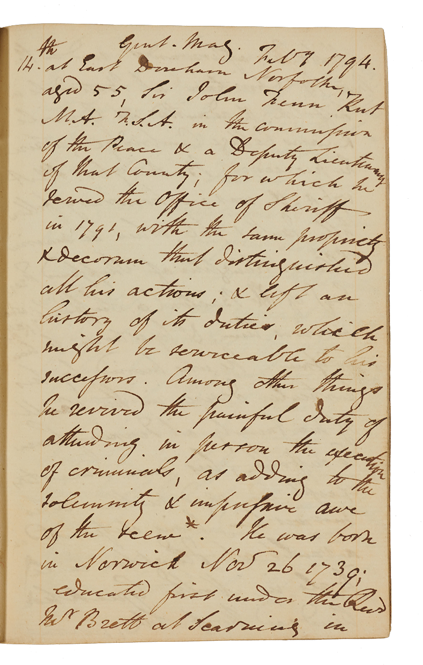 The autobiography of Sir John Fenn, the first editor in print of the Paston Letters. This book is now looked after at the Norfolk Record Office. His diaries for several years are also at the Norfolk Record Office..