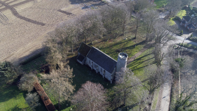 We took the opportunity to overfly the church as well, as it is another village building that certainly dates to medieval times. Doubtless the village was centred on church and castle in those times, though it is now split into two distinct sections.