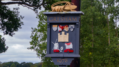 Gresham's history is told in the village signFor each of the Footprints hubs, we've established a trail and activities – the former for adventurous walkers, the latter for families to explore more locally. With the help of Norfolk County Council, these are now well-marked trails; look for the blue markers with the griffin logo. You'll also find a printed map, or you can follow a map available online.