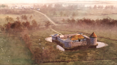 Morning mist rises from the moat at Gresham Castle.The drone survey was one of the first phases of building a computerised model of the castle. While some of the Letters give us clues, and other documentation helps with Bacon's building of the manor house and his obtaining permission to crenelate it, it is not clear what was built when. Our modeller created a documented account of the guidelines he would follow. Historic England, the landowner, other documentary evidence and the remains of the castle walls still in situ were used for reference. Modern aerial photography and techniques such as LIDAR all help build up the picture and we have John Paston's letter to his brother John with its small sketch of the castle layout..