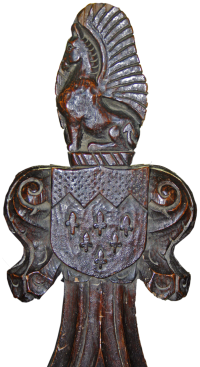 A pew end at St Margarets church, PastonTwo items offer themselves in the village of Paston, one real, the other virtual. In Paston church there are a number of Paston tombs with associated heraldry. However, it is the pew end with the carved Paston gryphon or griffin which is of most value in indicating that the Pastons worshipped and held sway in this place. This they did until the middle of the 17th century. Locating and identifying the gryphon is one of the elements of a heritage trail set out for visitors. Judge William Paston (1378-1444) purchased many of the family's early estates in Norfolk and set about building a manor house at Paston in the early part of the 15th century in what was an important step in achieving recognition and status.
