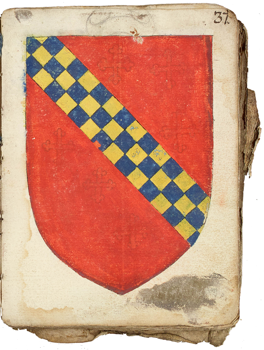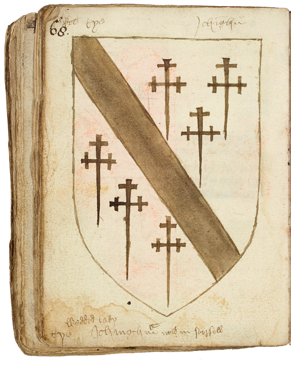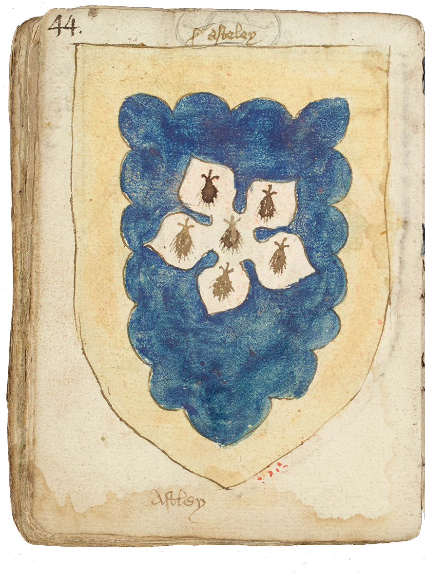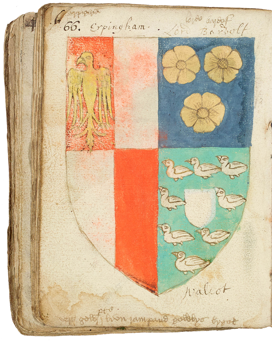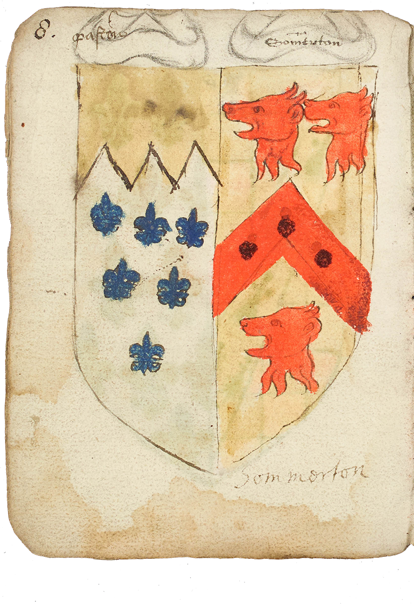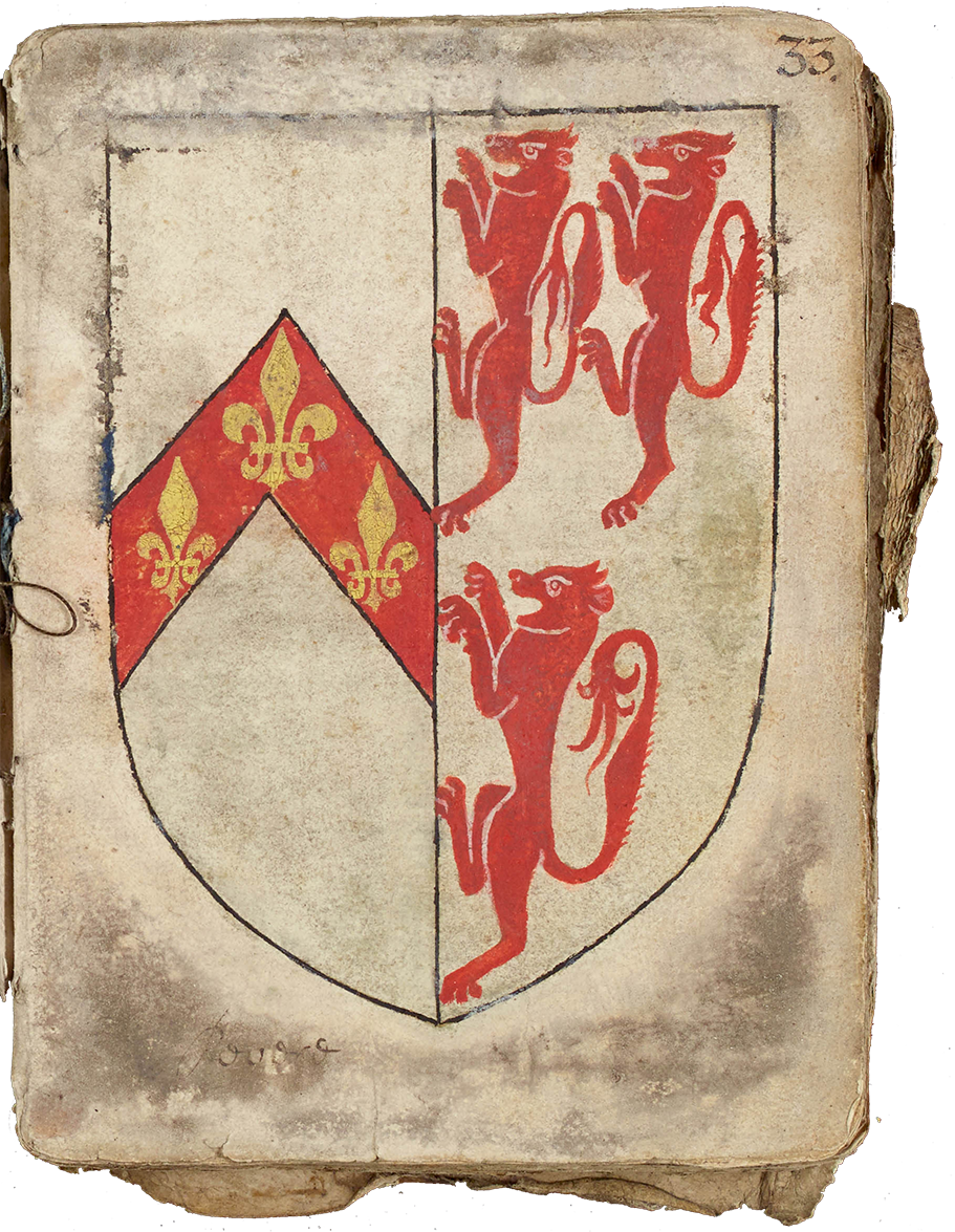 One of the fascinating documents among the Paston Letters is a book which has traditionally, though not necessarily correctly, been attributed to Friar Brackley. The first part consists of a series of coats of arms of friends, relatives and associates of the Paston family. On the latter pages are notes on French grammar, probably made by a young William Paston (1436-1496) while at the University of Cambridge. He may in fact have been the artist of the shields, and with the rarity and expense of paper, decided to use some pages for his notes.