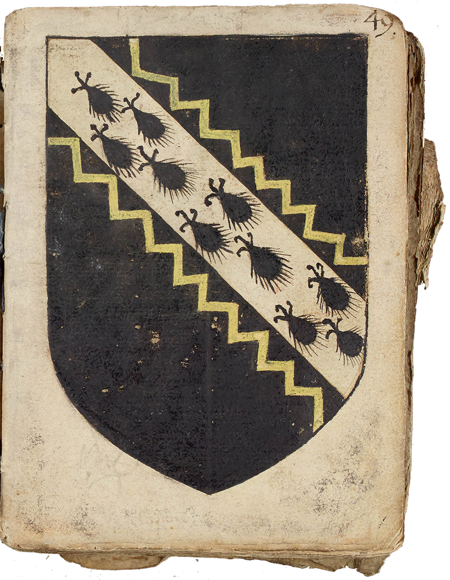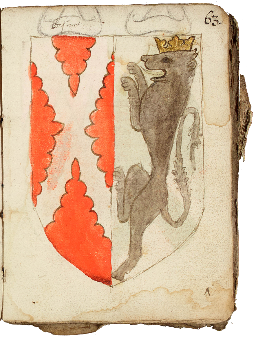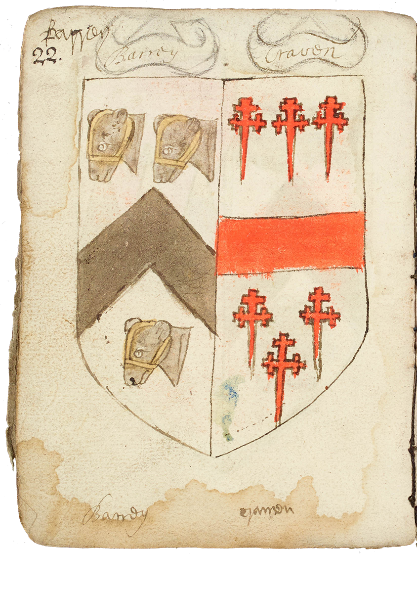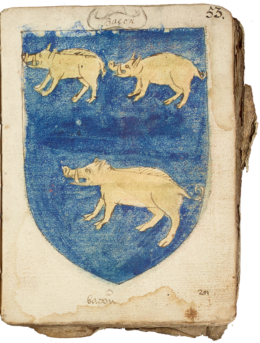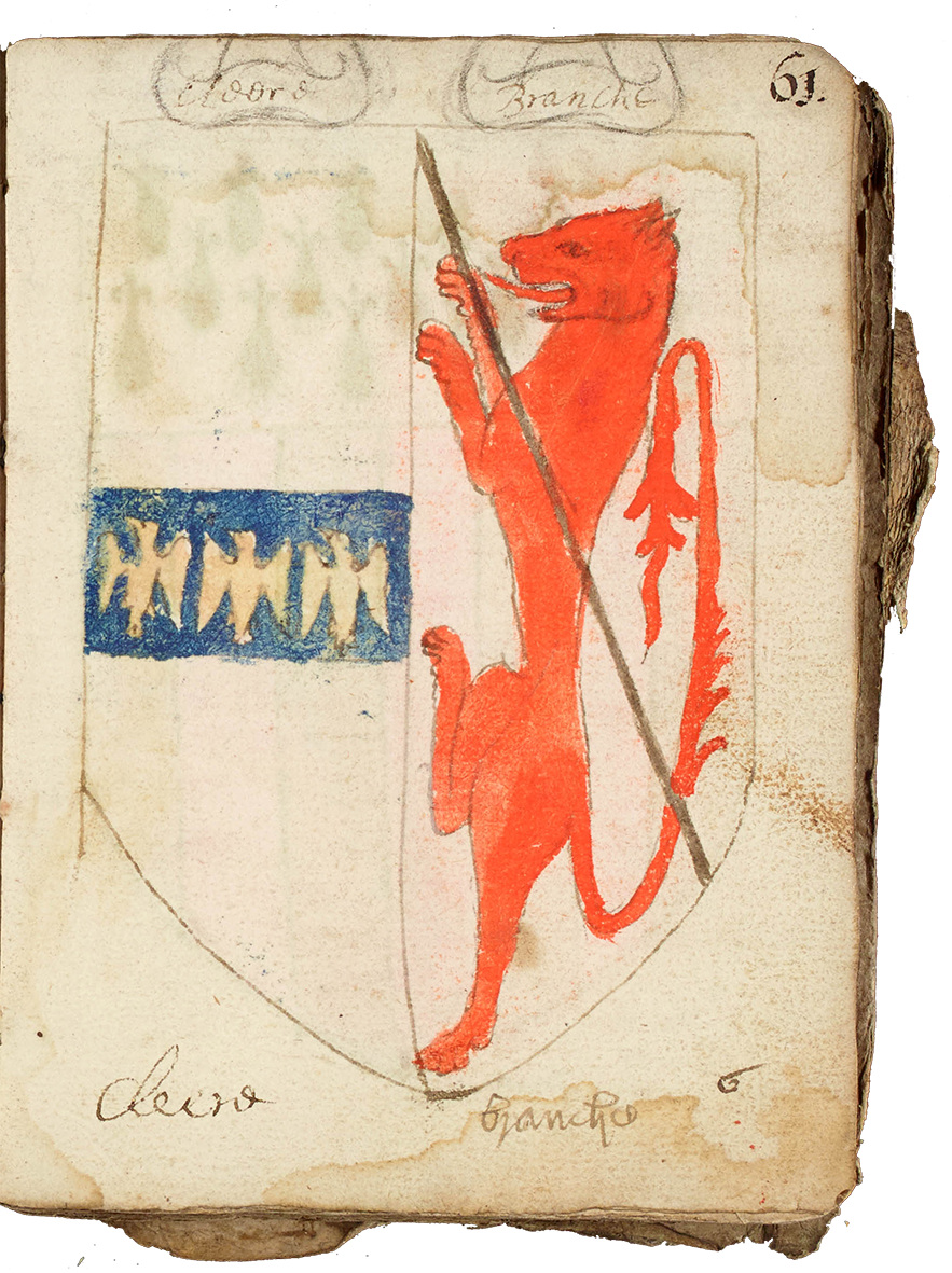 One of the fascinating documents among the Paston Letters is a book which has traditionally, though not necessarily correctly, been attributed to Friar Brackley. The first part consists of a series of coats of arms of friends, relatives and associates of the Paston family. On the latter pages are notes on French grammar, probably made by a young William Paston (1436-1496) while at the University of Cambridge. He may in fact have been the artist of the shields, and with the rarity and expense of paper, decided to use some pages for his notes.