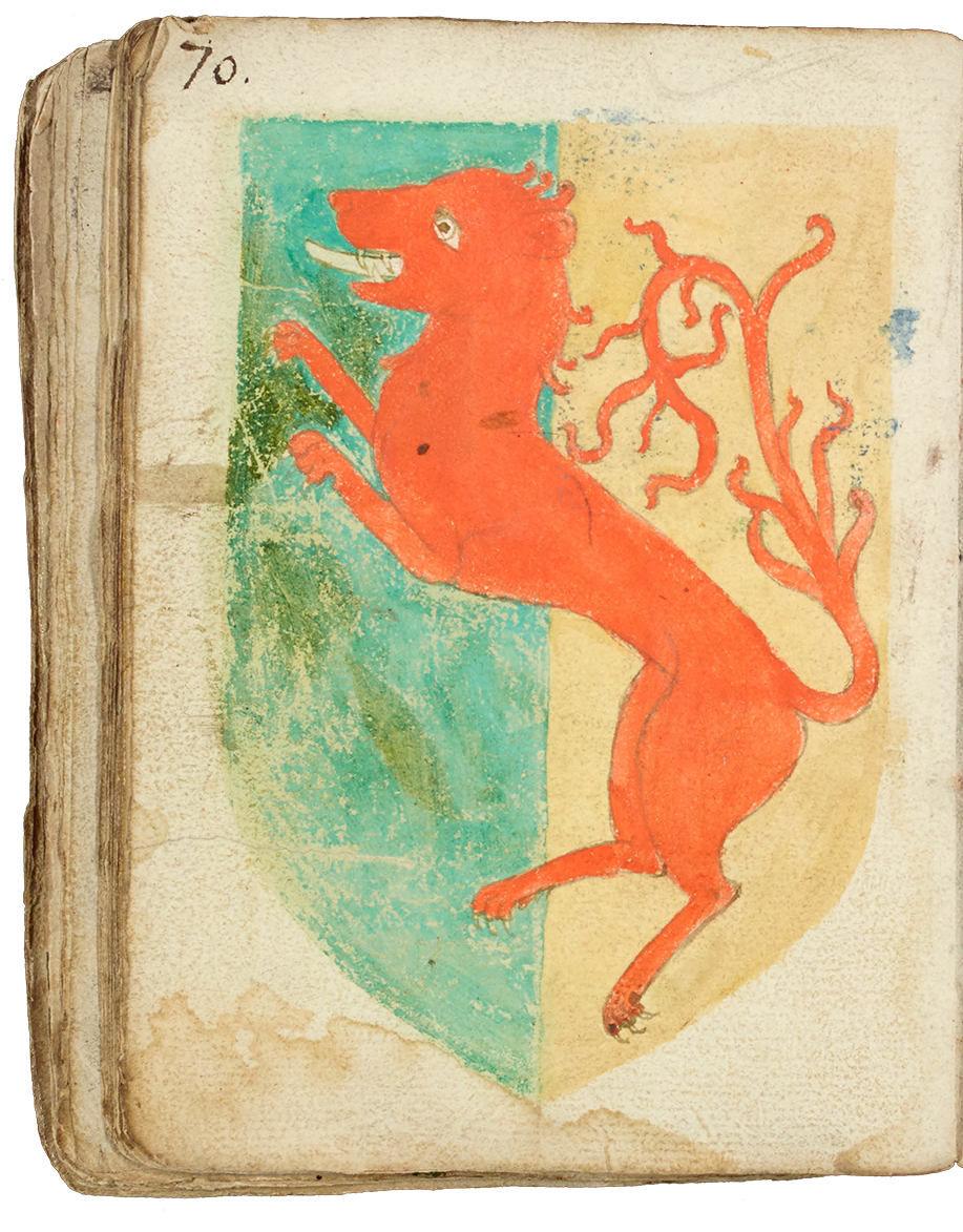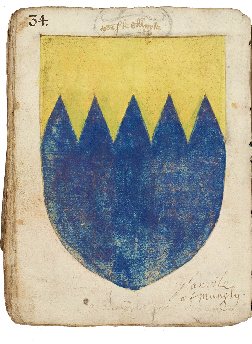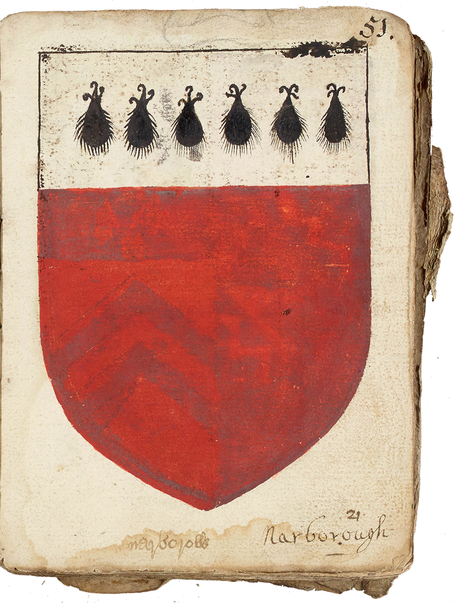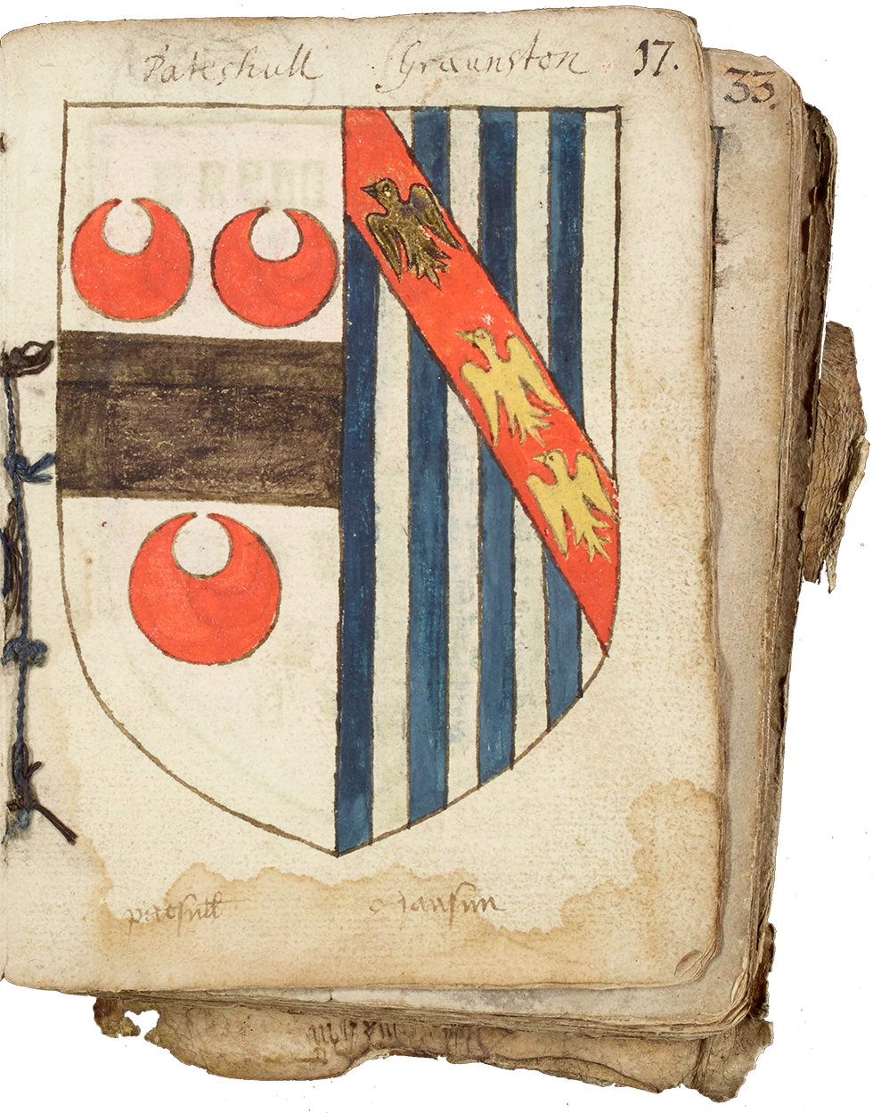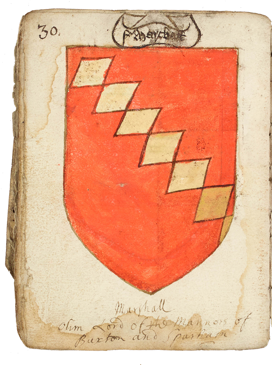 One of the fascinating documents among the Paston Letters is a book which has traditionally, though not necessarily correctly, been attributed to Friar Brackley. The first part consists of a series of coats of arms of friends, relatives and associates of the Paston family. On the latter pages are notes on French grammar, probably made by a young William Paston (1436-1496) while at the University of Cambridge. He may in fact have been the artist of the shields, and with the rarity and expense of paper, decided to use some pages for his notes.