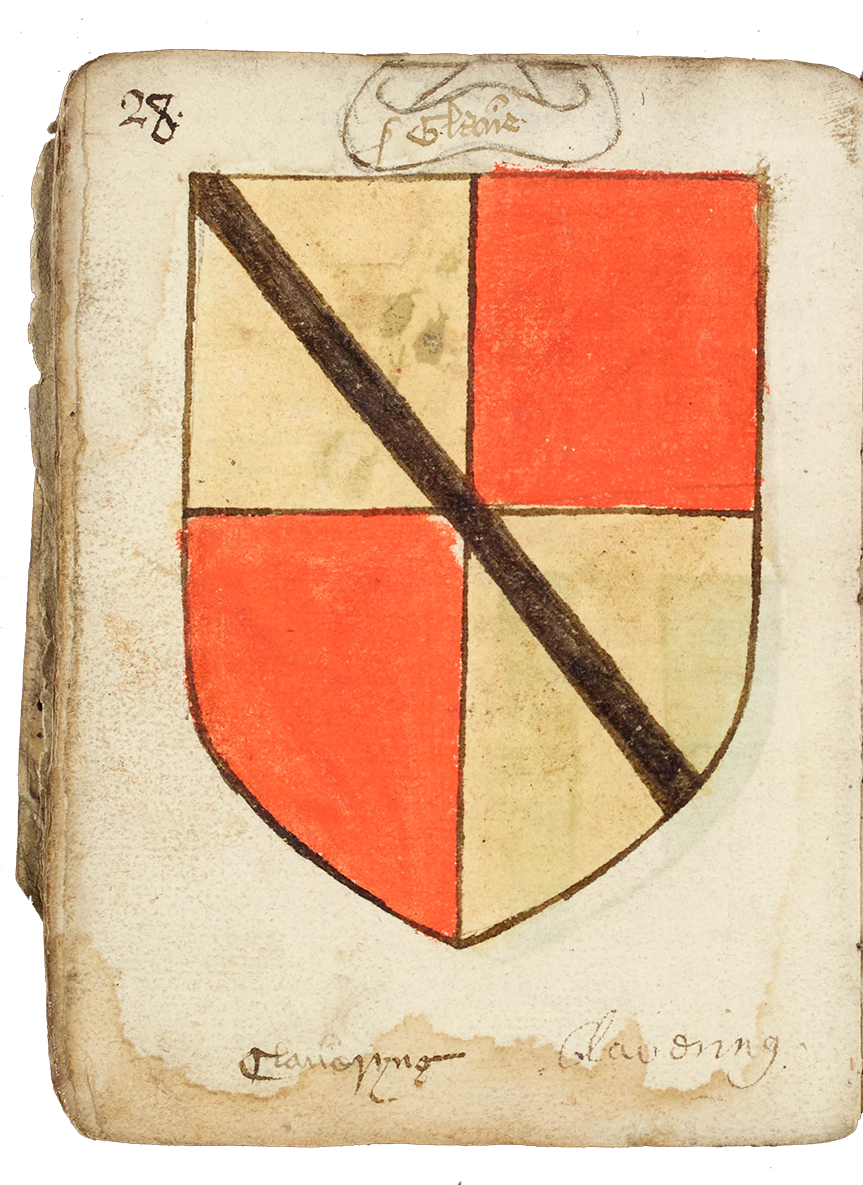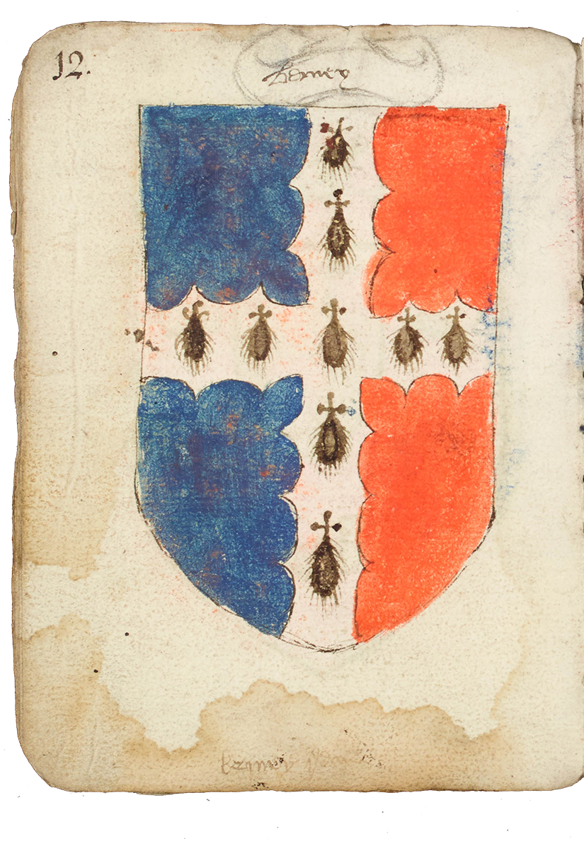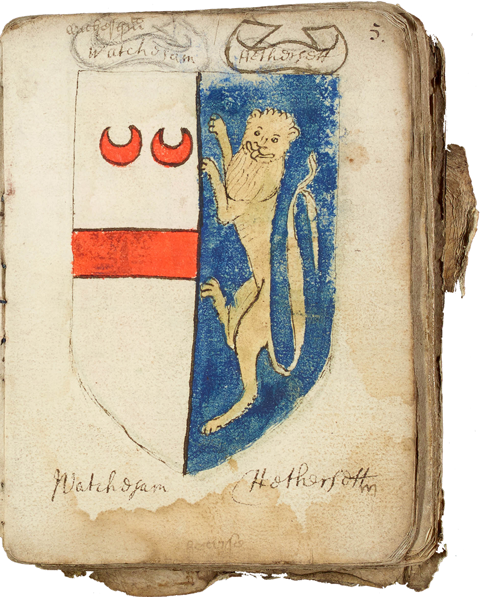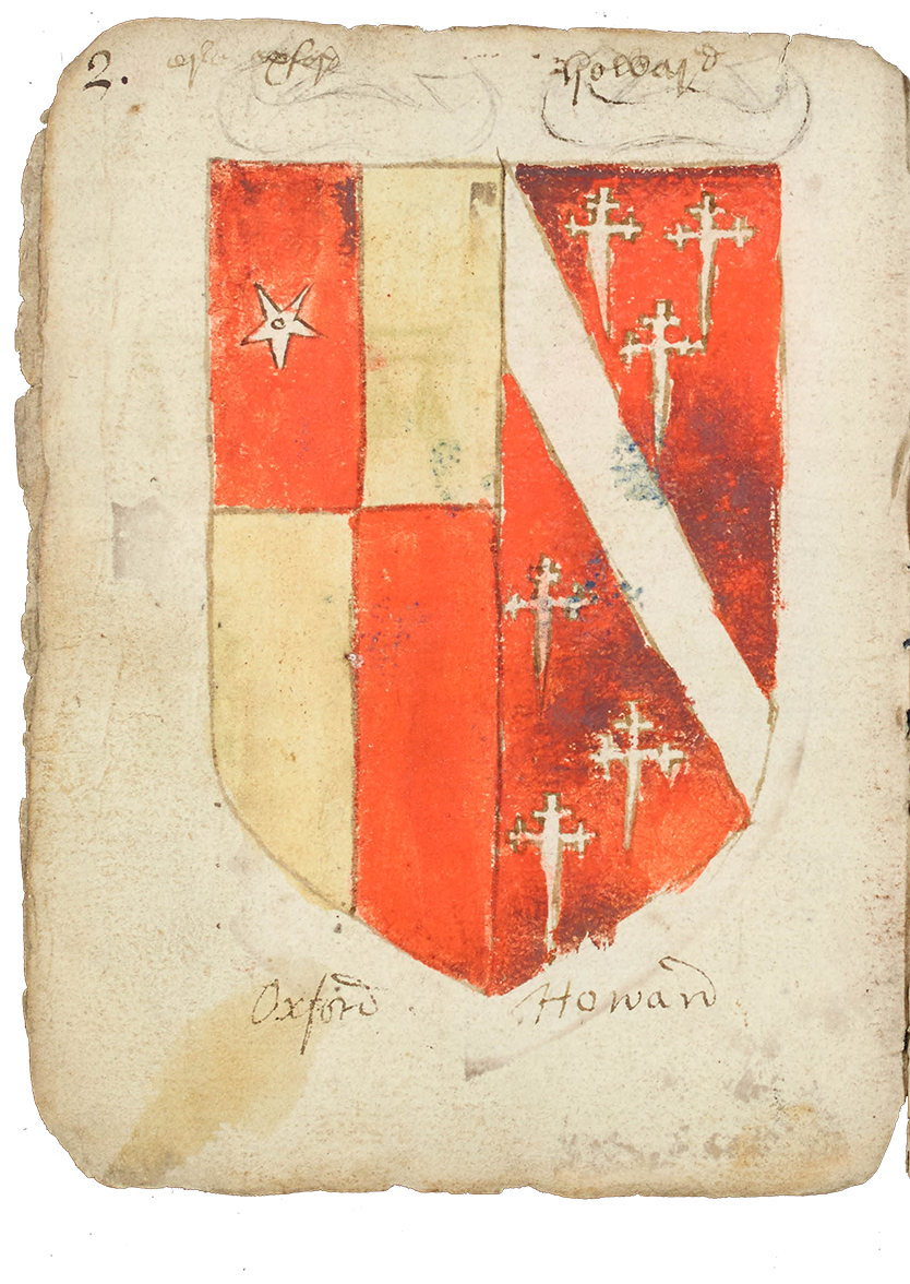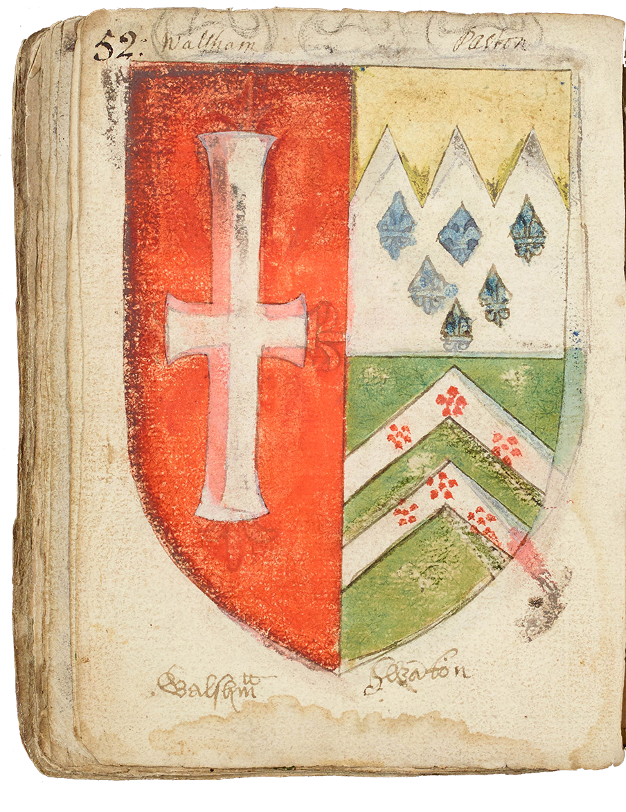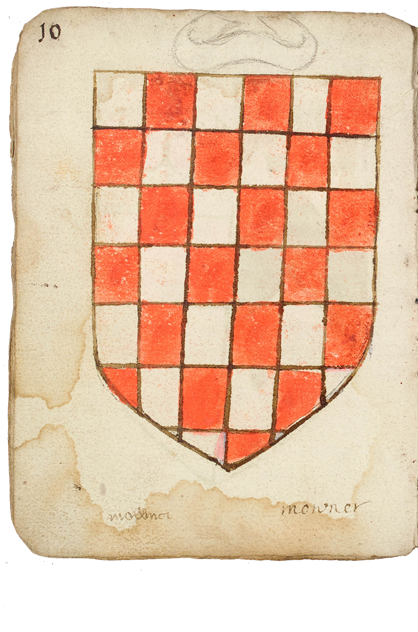 One of the fascinating documents among the Paston Letters is a book which has traditionally, though not necessarily correctly, been attributed to Friar Brackley. The first part consists of a series of coats of arms of friends, relatives and associates of the Paston family. On the latter pages are notes on French grammar, probably made by a young William Paston (1436-1496) while at the University of Cambridge. He may in fact have been the artist of the shields, and with the rarity and expense of paper, decided to use some pages for his notes.