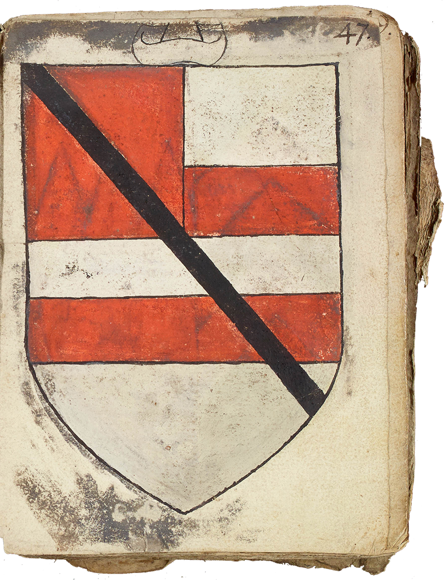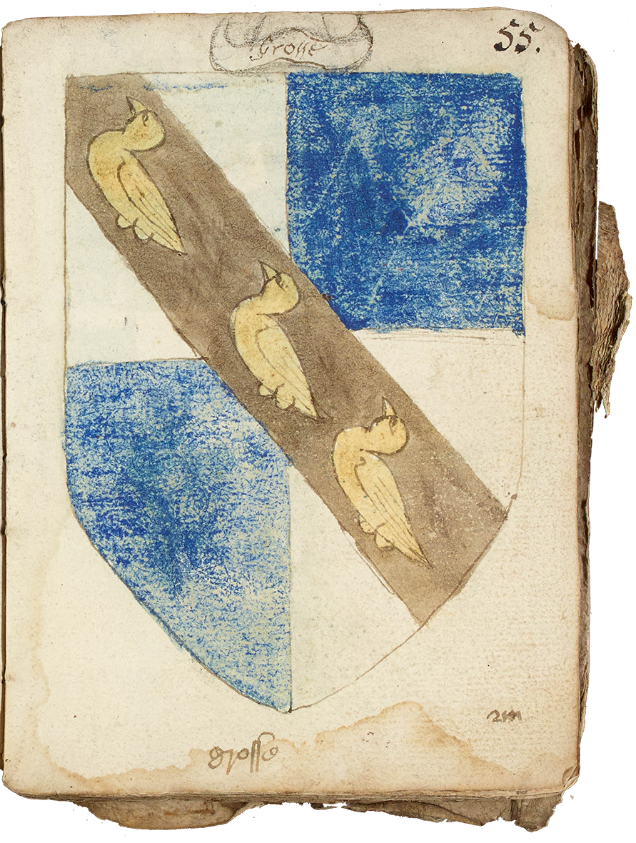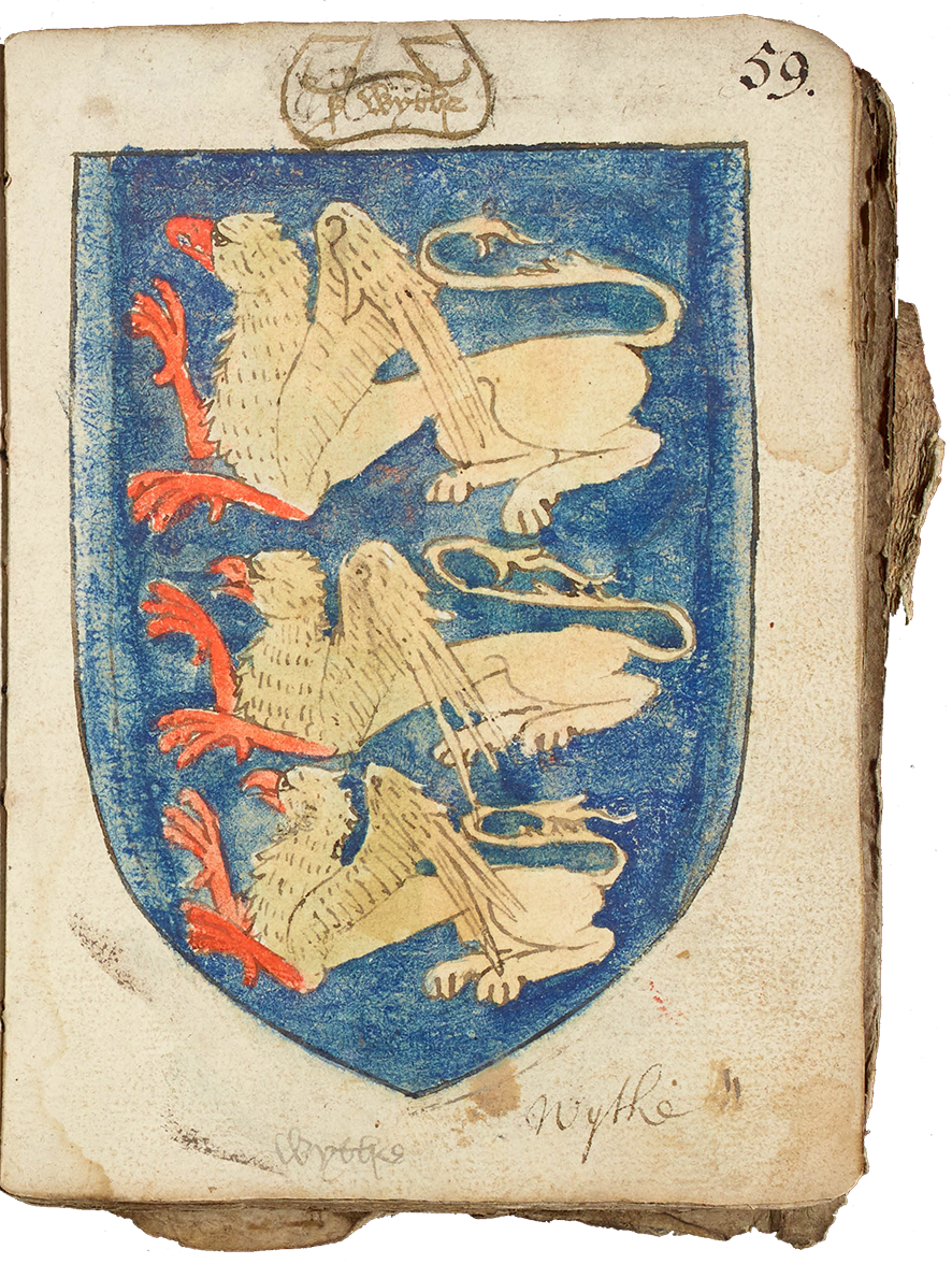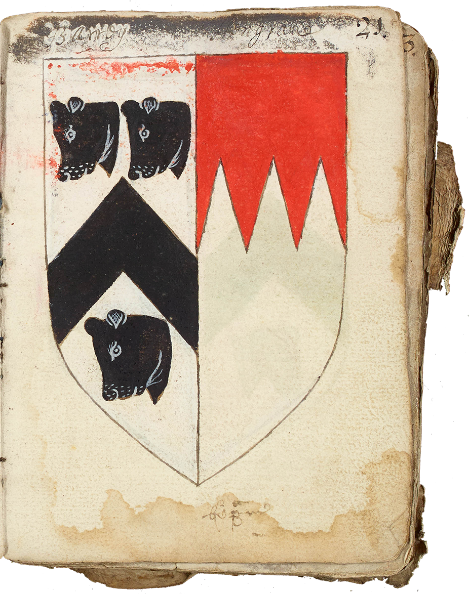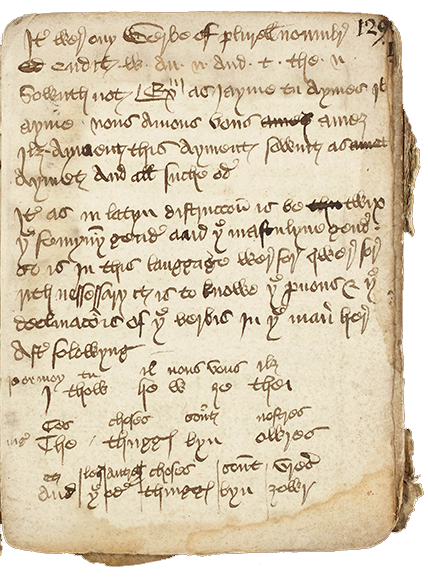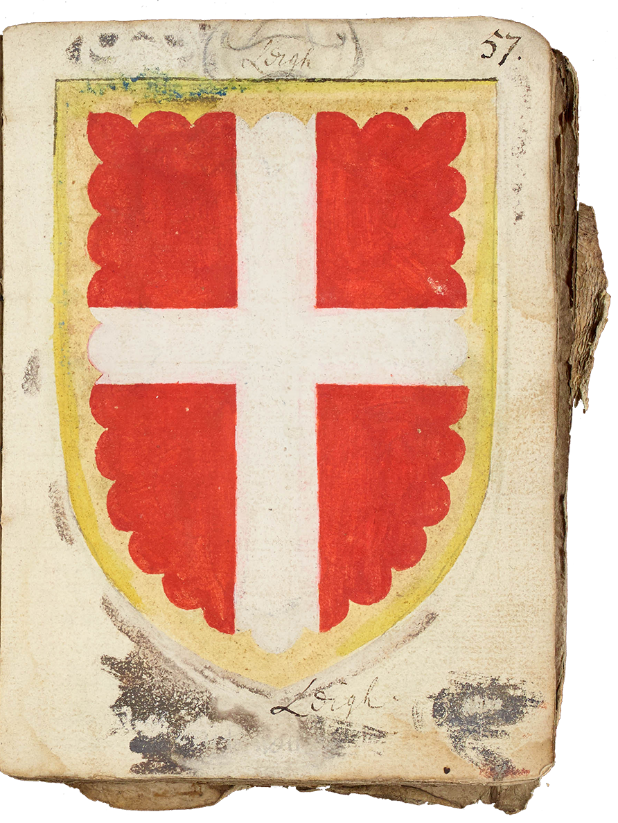 One of the fascinating documents among the Paston Letters is a book which has traditionally, though not necessarily correctly, been attributed to Friar Brackley. The first part consists of a series of coats of arms of friends, relatives and associates of the Paston family. On the latter pages are notes on French grammar, probably made by a young William Paston (1436-1496) while at the University of Cambridge. He may in fact have been the artist of the shields, and with the rarity and expense of paper, decided to use some pages for his notes.