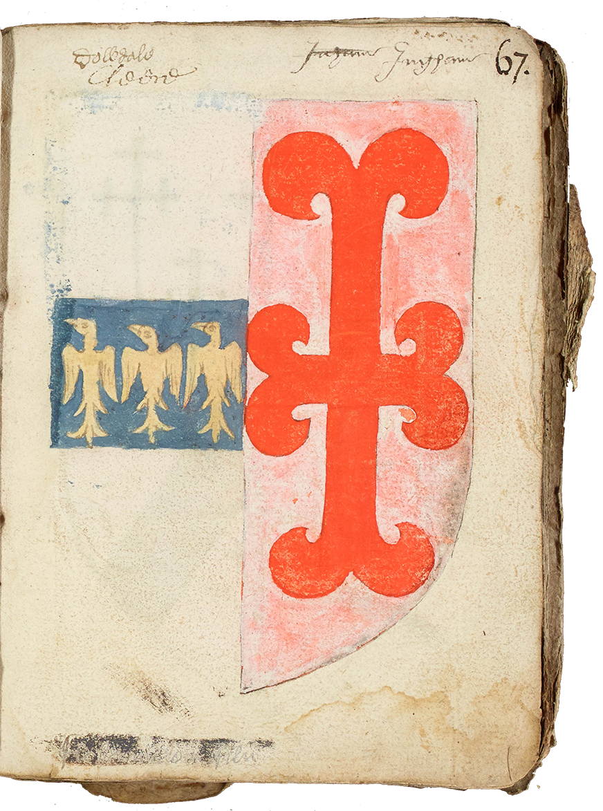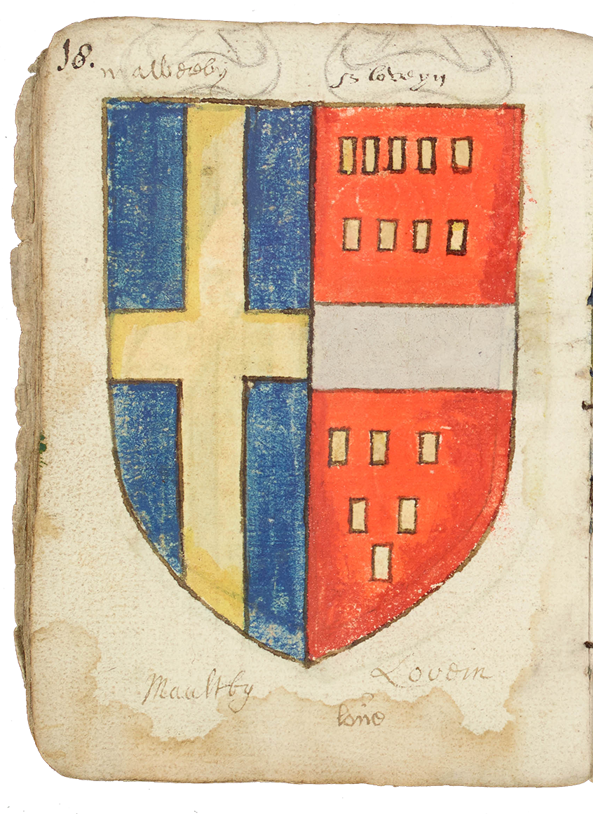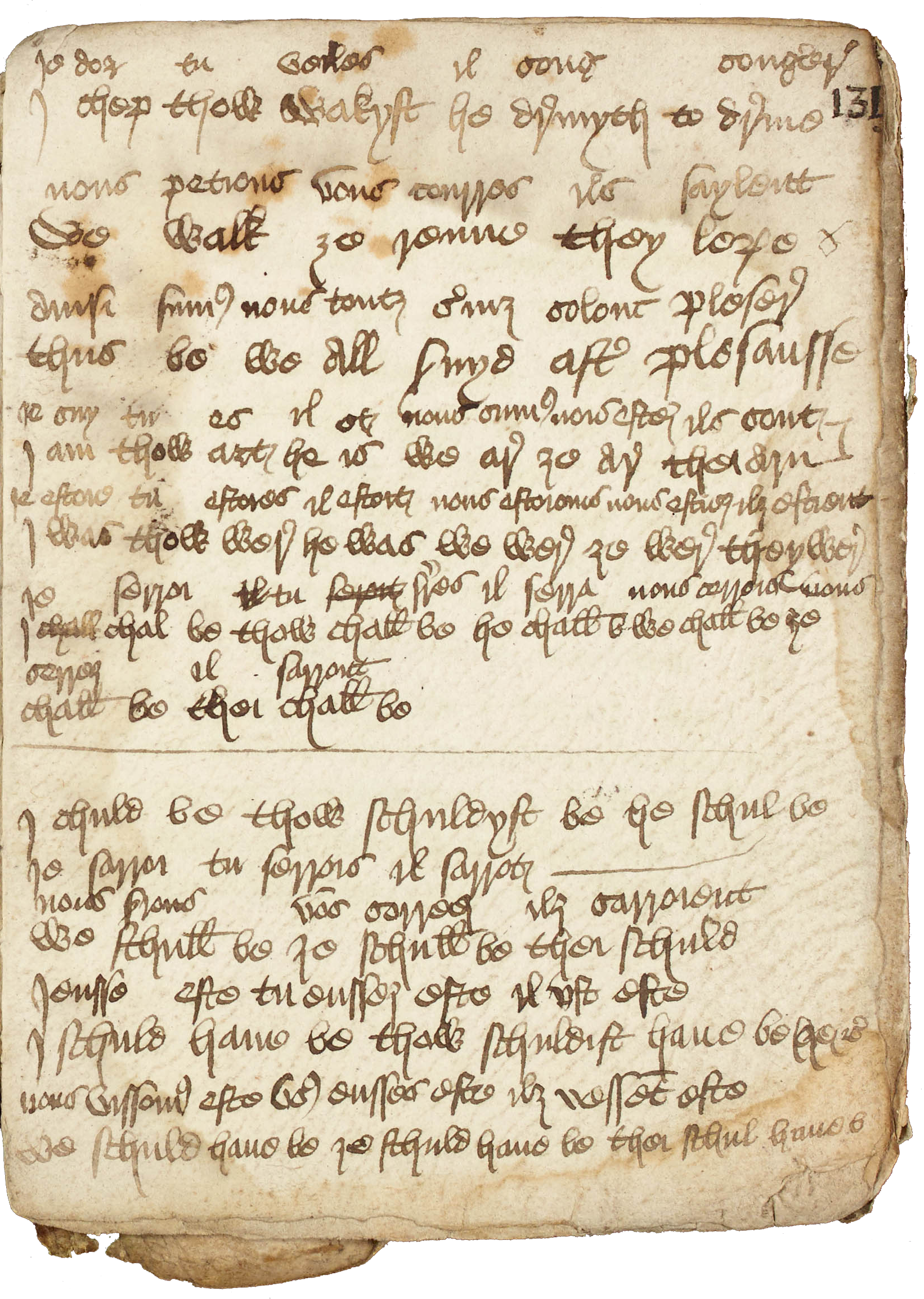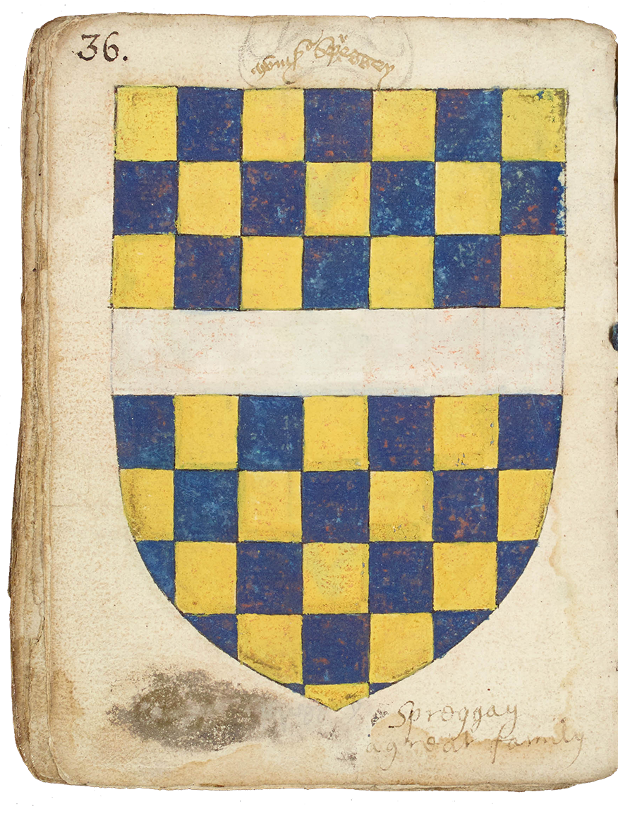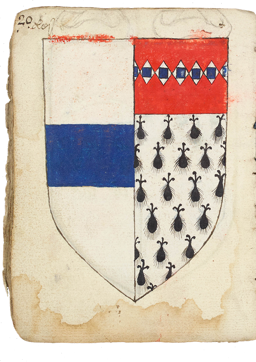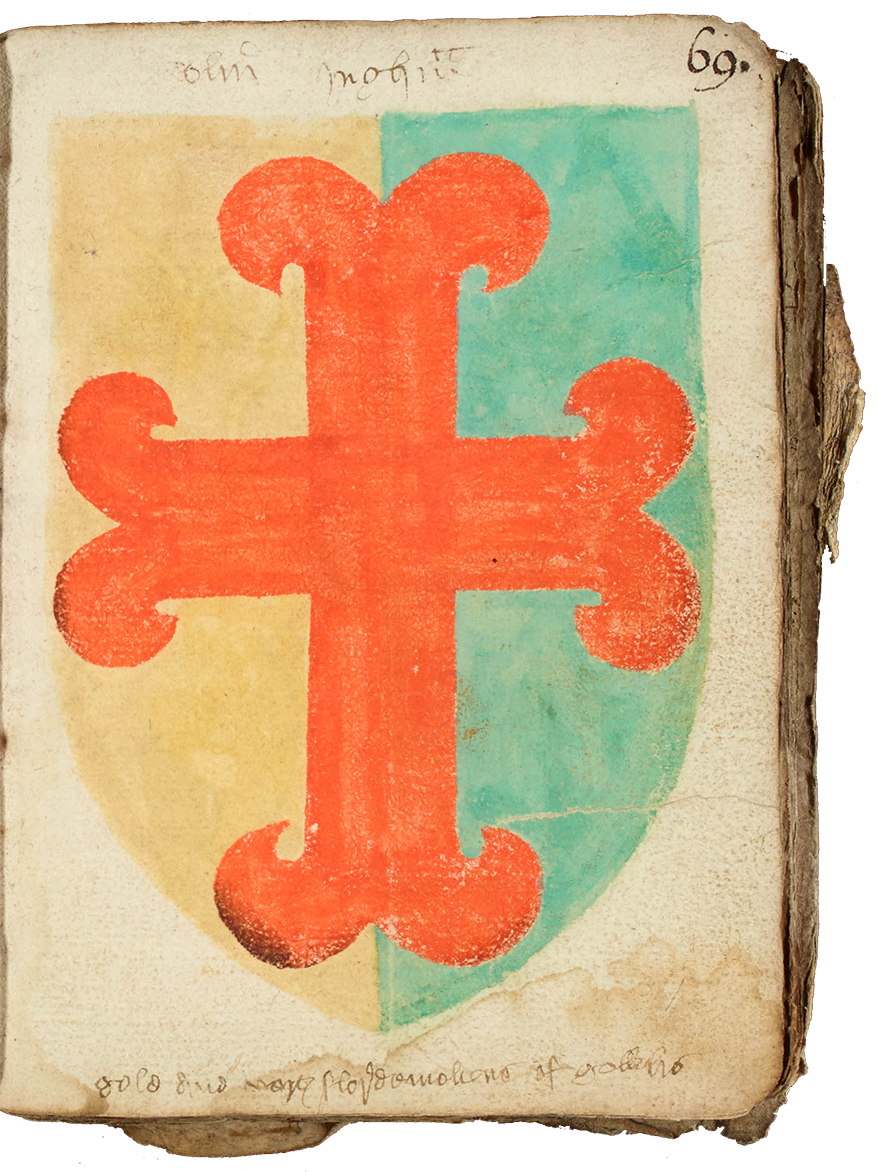 One of the fascinating documents among the Paston Letters is a book which has traditionally, though not necessarily correctly, been attributed to Friar Brackley. The first part consists of a series of coats of arms of friends, relatives and associates of the Paston family. On the latter pages are notes on French grammar, probably made by a young William Paston (1436-1496) while at the University of Cambridge. He may in fact have been the artist of the shields, and with the rarity and expense of paper, decided to use some pages for his notes.