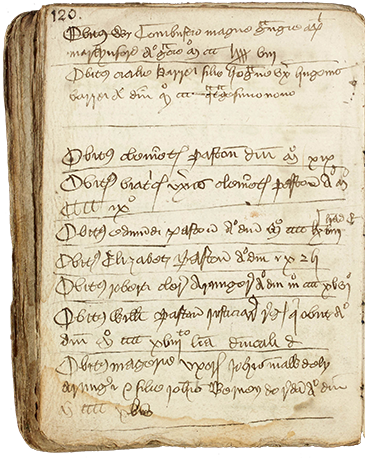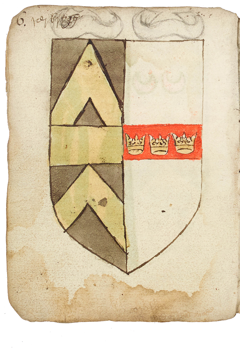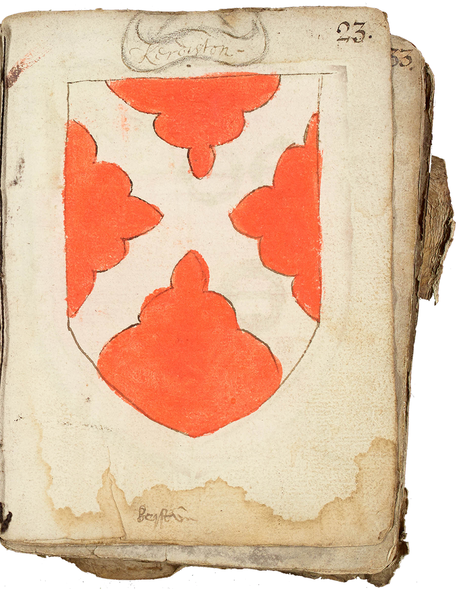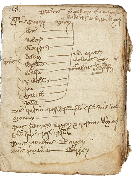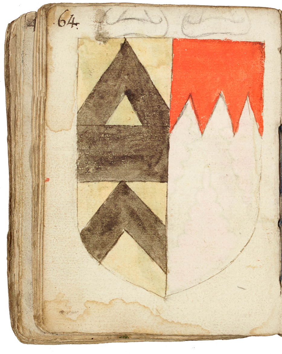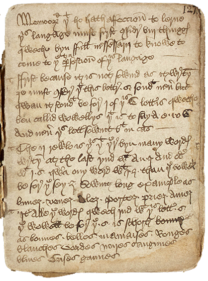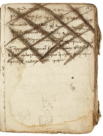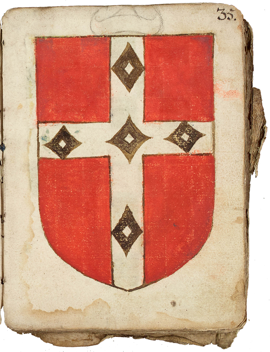 One of the fascinating documents among the Paston Letters is a book which has traditionally, though not necessarily correctly, been attributed to Friar Brackley. The first part consists of a series of coats of arms of friends, relatives and associates of the Paston family. On the latter pages are notes on French grammar, probably made by a young William Paston (1436-1496) while at the University of Cambridge. He may in fact have been the artist of the shields, and with the rarity and expense of paper, decided to use some pages for his notes.