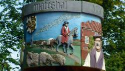 A wool brogger on Mattishall village signThe kings and queens of England and their governments found it very useful to be able to put a tax on wool. If they decided to raise an army to fight a war, then money from the wool trade was often the way they could do it. The local council of Norwich also had its own taxes, charging merchants in the city on the amount of trade they did. Because of the Norwich taxes, wool dealers – broggers – sometimes set up in business at other places. The village of Mattishall benefited from their presence, being central to the county of Norfolk. Several houses in Mattishall and many other Norfolk towns survive from medieval times. The most famous town with houses built with the profits from wool is probably Lavenham in Suffolk.